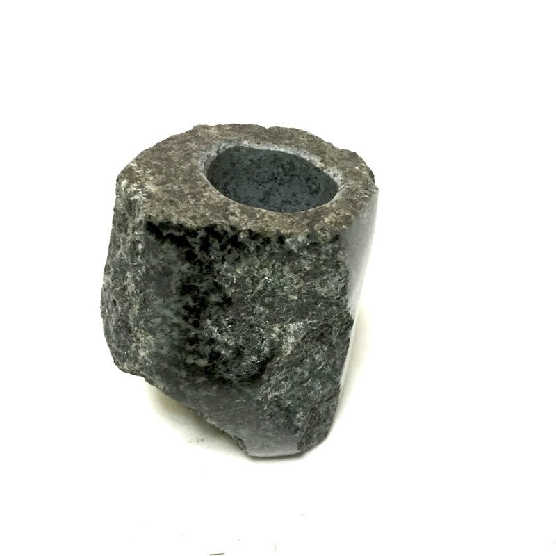 正面は玉石の表皮の部分。他の面は割れ肌仕上げです。エッジの部分だけ細く磨いてあります。花を挿す部分の穴は直径27mm、底を約2cm残して穴を開けてあります。